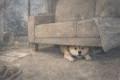 不安が強い犬は、膝に乗ろうとしたり足元に潜り込んだりします。